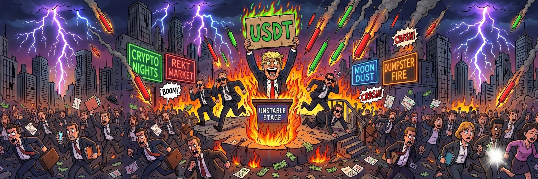 USDT = Unstable Donald Trump. The pun everyone sees but no one can ignore. Pure memecoin energy.